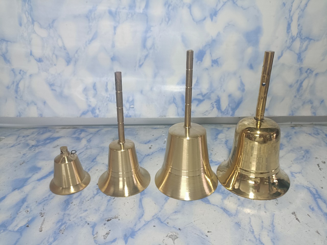 Chuông lắc tay lớn mà nguyên thủy Cao: 18cm Đường Kính chuông: 8,5cm Chất liệu: Đồng thau Chuông thiết kế bên trong quả chuông bằng đồng , âm thanh nhẹ nhàng dễ chịu, vang xa vừa đủ Trọng lượng: 300gr~ Thường dùng để sử dụng như: bán kem, dạy học , dịp noel,....