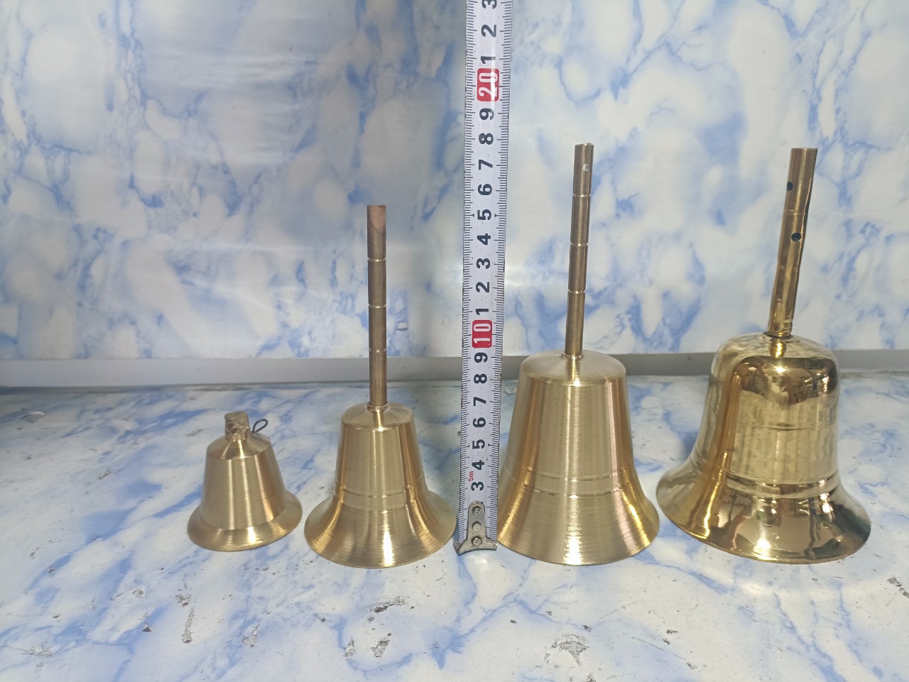 Chuông lắc tay trung Cao: 15cm Đường Kính chuông: 7cm Chất liệu: Đồng thau Chuông thiết kế bên trong quả chuông bằng đồng , âm thanh nhẹ nhàng dễ chịu, vang vừa tầm Trọng lượng: 200gr~