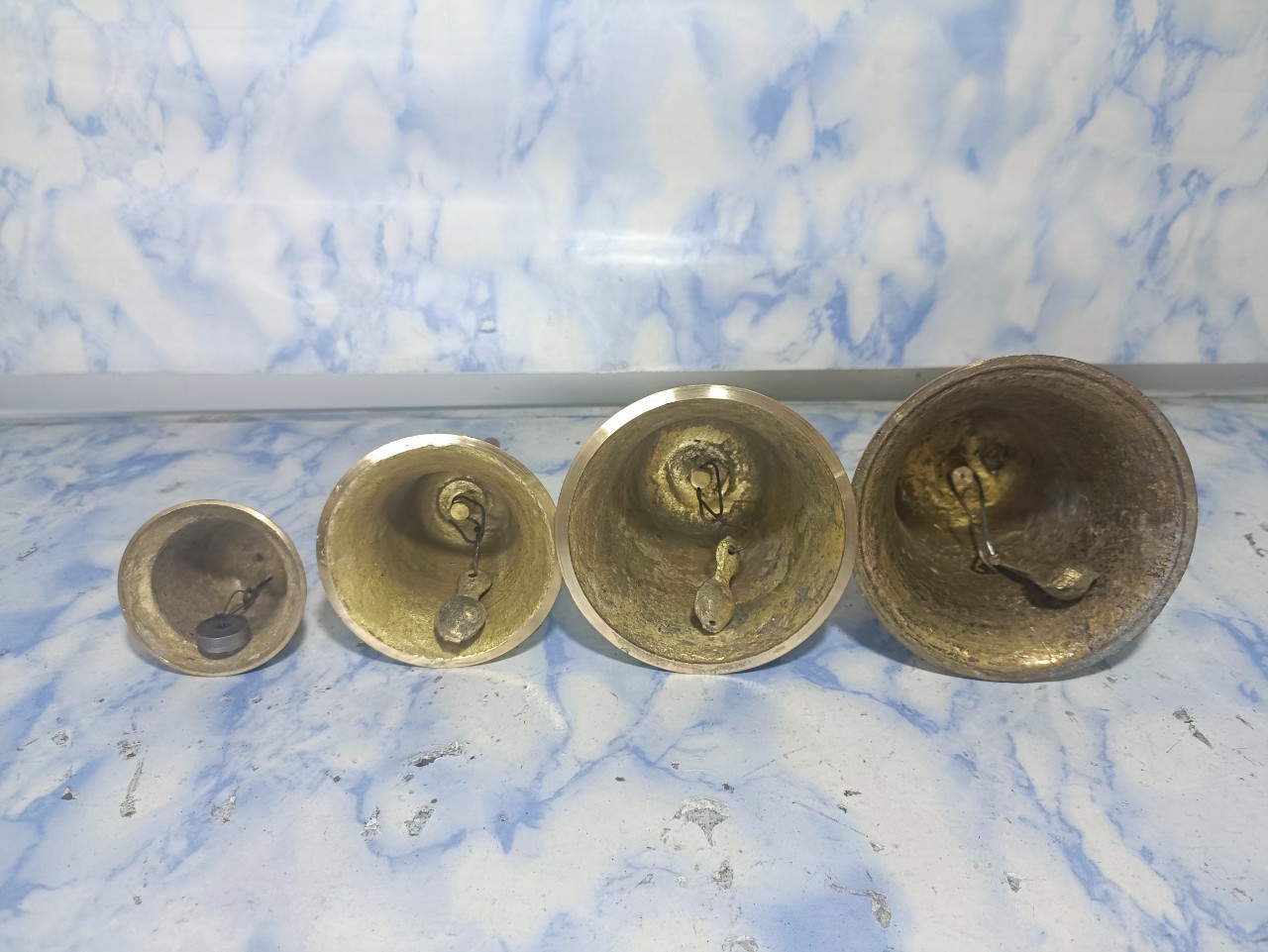 Chuông lắc nhỏ Cao: 5,5cm Đường Kính chuông: 5cm Chất liệu: Đồng thau Chuông thiết kế bên trong quả chuông bằng sắt , thường đeo cổ bò dê trâu,... Trọng lượng: 50gr~