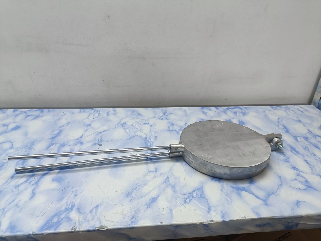 Chất liệu: Nhôm Cao: 3cm , Đường kính khuôn: 18cm, Chiều dài khuôn: 25cm Đường kính ra bánh: 13,5cm ; Chiều sâu bánh dầy: 2cm ( 2 mặt khép lại), Bánh kẹp dầy làm ra bánh: Nhỏ Cán cây sắt dài xi bóng 29,5cm ( quý khách có thể sử dụng vải quấn cho đỡ nóng)