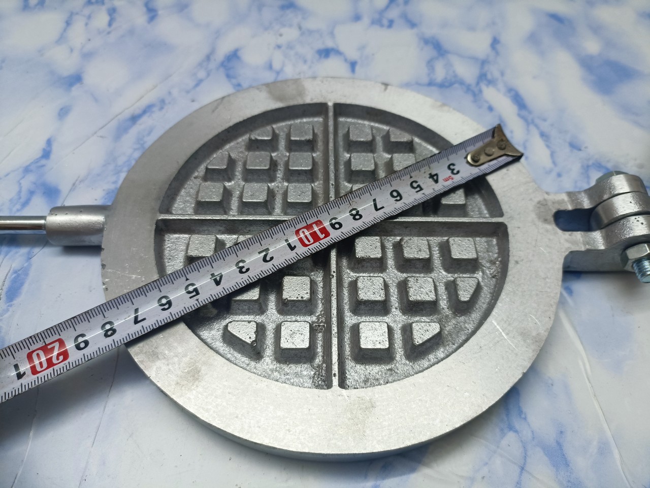 Shop làm mẫu cán cây ko dùng gỗ mà cây sắt xi bóng dài 29,5cm đẹp Trọng lượng khuôn: 2kg~, Khuôn bánh kẹp dày bằng Nhôm là sản phẩm được sản xuất đúc theo công nghệ mới. Cho ra 1 sản phẩm đẹp, sáng . Về mặt thẩm mỹ sẽ đẹp hơn nhiều, độ sắc nét cao, mặt phẳng láng. Khuôn bánh kẹp dày Waffle bằng nhôm là khuôn bánh được làm ra sẽ to và dày vì có độ sâu. Giúp bánh chín vàng đều nhờ các khía hình vuông caro.