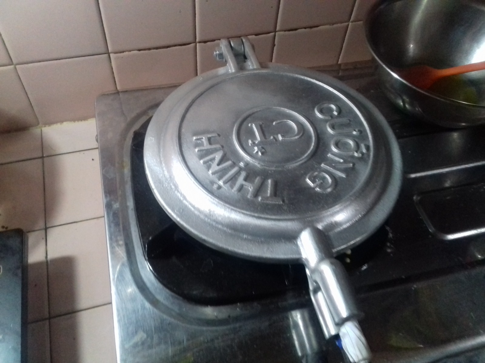 Khuôn bánh kẹp dày Lớn Chất liệu: Nhôm Cao: 3cm , Đường kính khuôn: 22cm, Chiều dài khuôn: 31cm ( Cán cầm bằng gỗ: 20cm đến 25cm) Vành mép khuôn: 2cm, Đường kính ra bánh: 17,5cm ; Chiều sâu bánh dầy: 2cm ( 2 mặt khép lại), Bánh kẹp dầy làm ra bánh lớn Khuôn có kích thước Lớn, bánh ra Lớn Trọng lượng khuôn: 2Kg~
