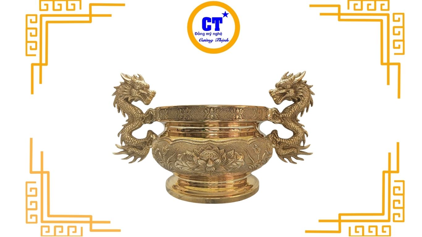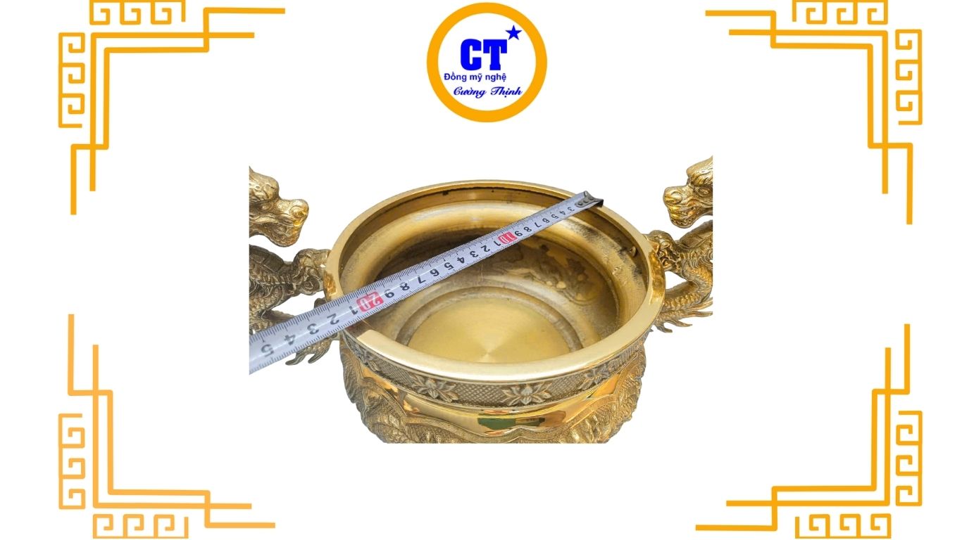 Kích thước: Lư có quai rồng Cao: 15,5cm, Đường kính miệng 22cm phủ bì, Trọng lượng: 3kg4~ xin cho phép sai số nhỏ
